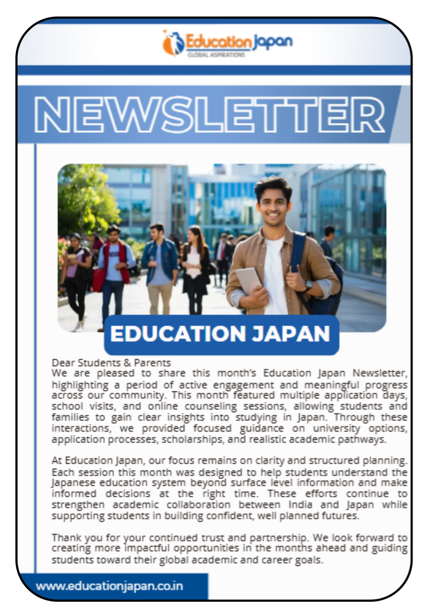 Education Japan provided exceptional guidance throughout my application to top universities in Japan. Their personalized support and deep expertise helped me stand out, secure admission to a prestigious university, and even earn a 50% tuition reduction scholarship. I highly recommend them to anyone planning to study in Japan -Shubh Shukla